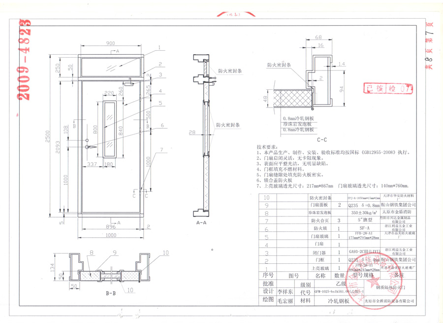 鋼質(zhì)乙級單開防火門